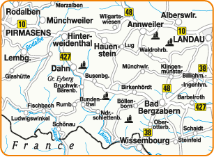 Deutsch-Franz. PAMINA-Radweg von Hinterweidenthal - Dahn - Bobenthal - Wissembourg